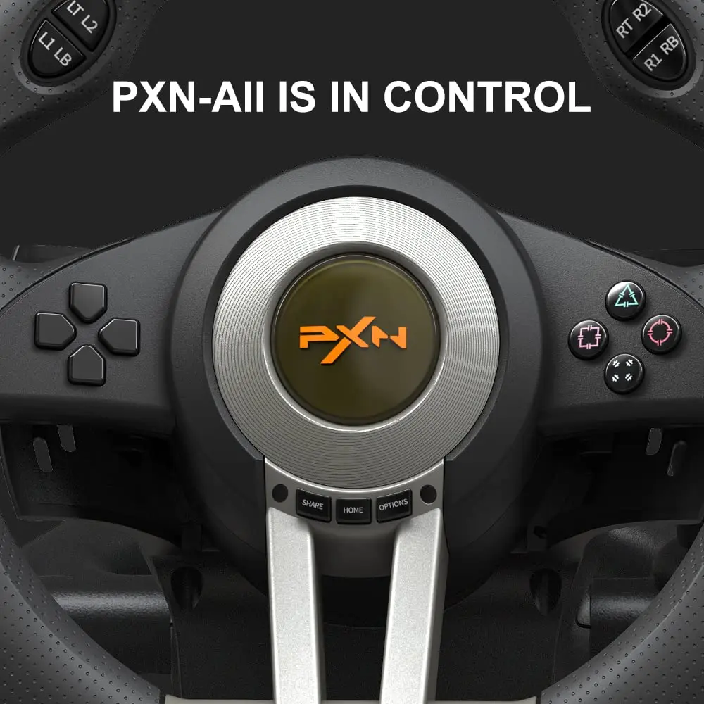 The PXN V3 Pro Racing Wheel  is gaming steering wheel with 180-degree rotation and vibration feedback, compatible with multiple platforms including PC, PlayStation, Xbox, and Nintendo Switch